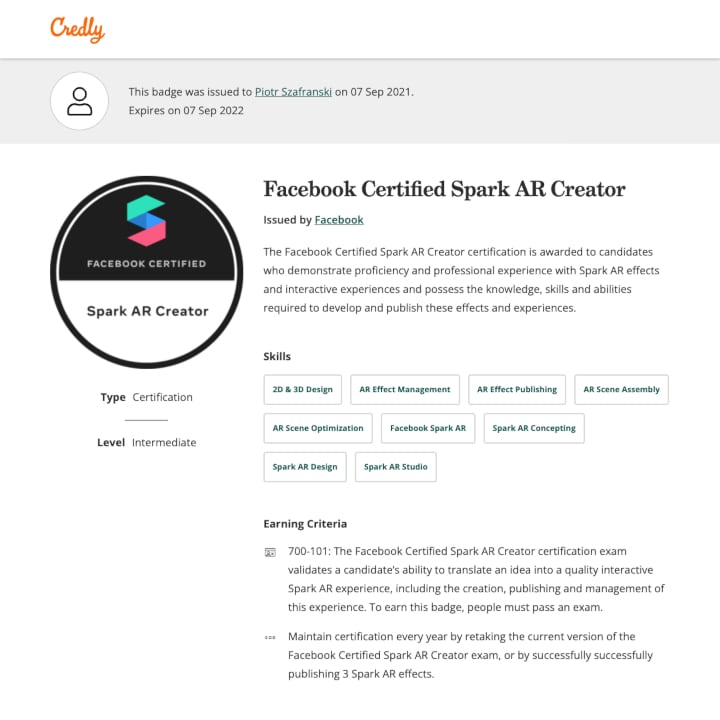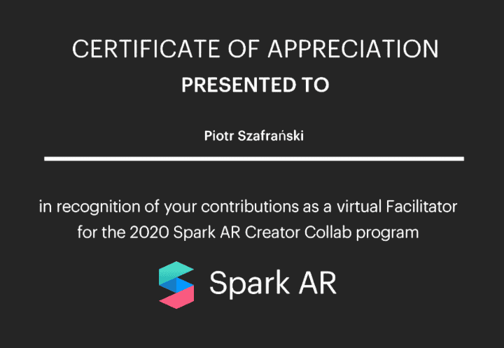 Two months later, minutes before Facebook Connect 2021, I officially became one of the first certified Spark AR professionals!